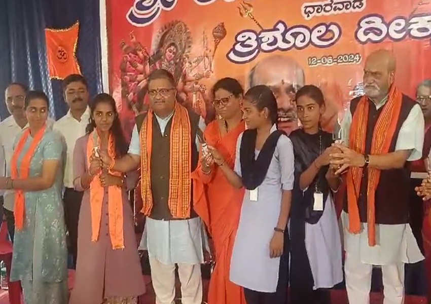 Dharwad News: ಧಾರವಾಡ: ಶ್ರೀರಾಮ ಸೇನೆ ನೇತೃತ್ವದಲ್ಲಿ ತ್ರಿಶೂಲ ದೀಕ್ಷಾ ಕಾರ್ಯಕ್ರಮವನ್ನು ಧಾರವಾಡ ನಗರದ ವಿದ್ಯಾಗಿರಿಯ ಸಮುದಾಯ ಭವನದಲ್ಲಿ ಹಮ್ಮಿಕೊಳ್ಳಲಾಗಿತ್ತು.