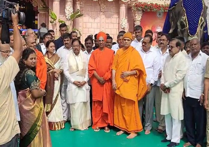 Tumakuru: ತುಮಕೂರು: ಕಲ್ಪತರು ನಾಡ ಹಬ್ಬ ತುಮಕೂರು ದಸರಾಗೆ ಡಾ.ಜಿ.ಪರಮೇಶ್ವರ್ ಅವರು ಅದ್ಧೂರಿ ಚಾಲನೆ ನೀಡಿದ್ದಾರೆ. ತುಮಕೂರಿನ ಜೂನಿಯರ್ ಕಾಲೇ ಮೈಧಾನದಲ್ಲಿ ನಿರ್ಮಾಣಗೊಂಡಿರುವ ಭವ್ಯ ದಸರಾ ಧಾರ್ಮಿಕ ಮಂಟಪವನ್ನು ಡಾ.ಜಿ.ಪರಮೇಶ್ವರ್ ಅವರು ಉದ್ಘಾಟಿಸುವ ಮೂಲಕ, ದಸರಾಗೆ ಚಾಲನೆ ನೀಡಿದ್ದಾರೆ.