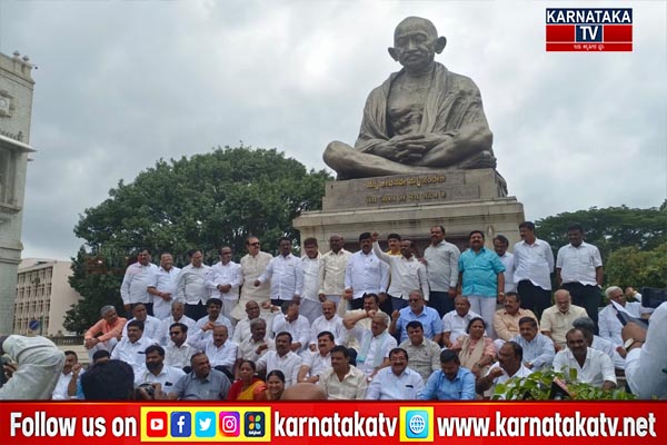 Vidhana Soudha : ವಿಧಾನ ಸೌಧದ ಗಾಂಧಿ  ಪ್ರತಿಮೆ ಬಳಿ ಬಿಜೆಪಿ  ನಾಯಕರಿಂದ ಪ್ರತಿಭಟನೆ