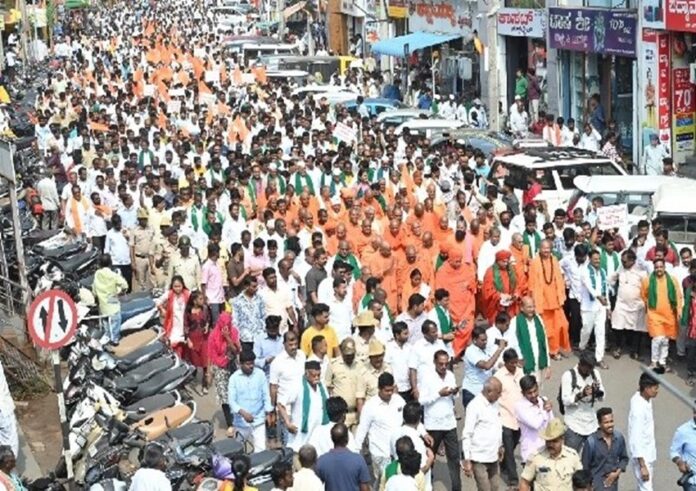 ಕನ್ಹೇರಿ ಮಠದ ಅದೃಶ್ಯ ಕಾಡಸಿದ್ದೇಶ್ವರ ಸ್ವಾಮೀಜಿ ನೇತೃತ್ವದಲ್ಲಿ ಈ ಜಾಥಾ ನಡೆದಿದ್ದು, ಬಿಜೆಪಿ ಹಿರಿಯ ನಾಯಕ ಬಸನಗೌಡ ಪಾಟೀಲ್ ಯತ್ನಾಳ್ ಸೇರಿ, ಹಲವು ಗಣ್ಯರು, ಮಠಾಧೀಶರು, ಹಿಂದೂ ಕಾರ್ಯಕರ್ತರು ಸೇರಿ ಹಲವು ರೈತರು ಧರಣಿ ಜಾಥಾದಲ್ಲಿ ಭಾಗವಹಿಸಿದ್ದರು.