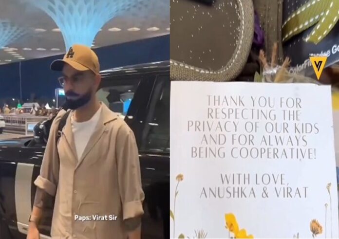 ಅದರಂತೆ ಪಾಪರಾಜಿಗಳು ಕೂಡ, ವೀಡಿಯೋ ವೈರಲ್ ಮಾಡದೇ. ವೀಡಿಯೋವನ್ನು ಗೌಪ್ಯವಾಗಿಯೇ ಇರಿಸಿದ್ದಾರೆ. ಹೀಗಾಗಿ ಖುಷಿಯಾಗಿರುವ ಅನುಷ್ಕಾ ಪಾಪರಾಜಿಗಳಿಗಾಗಿ ಬ್ಯಾಗ್ ಸೇರಿ ಇತರ ವಸ್ತುಗಳನ್ನು ಗಿಫ್ಟ್ನಂತೆ ಪ್ಯಾಕ್ ಮಾಡಿ, ವಿರಾಟ್ ಕೈಯಲ್ಲಿ ಕೊಟ್ಟು ಕಳುಹಿಸಿದ್ದಾರೆ.