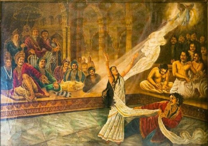 ಈ ವೇಳೆ ದ್ರೌಪದಿಗೆ ಕೌರವರು ಅವಮಾನ ಮಾಡಿ, ಅಪಹಾಸ್ಯ ಮಾಡಿ, ತುಂಬಿದ ಸಭೆಯಲ್ಲಿ ವಸ್ತ್ರಾಪಹರಣ ಮಾಡುತ್ತಾರೆ. ಈ ವೇಳೆ ದ್ರೌಪದಿ ಕೃಷ್ಣನನ್ನು ನೆನೆದು, ತನ್ನ ರಕ್ಷಣೆಗೆ ಕರೆಯುತ್ತಾಳೆ. ಆಗ ಶ್ರೀಕೃಷ್ಣ ದ್ರೌಪದಿಯ ಮಾನ ಕಾಪಾಡುತ್ತಾನೆ.