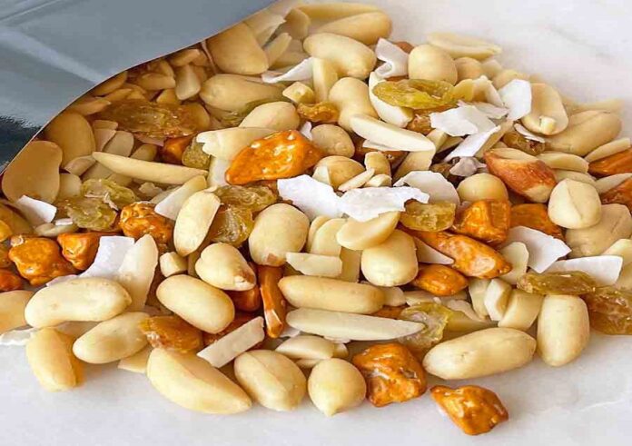ಬೇಕಾಗುವ ಸಾಮಗ್ರಿ: ಒಂದು ಕಪ್ ಶೇಂಗಾ, ಒಂದು ಕಪ್ ಹುರಿಗಡಲೆ ಅಥವಾ ಪುಟಾಣಿ, ಸಣ್ಣಗೆ ಕಟ್ ಮಾಡಿದ ಒಣಕೊಬ್ಬರಿ, ಒಂದು ಕಪ್ ಎಳ್ಳು, ಬೇಕಾದಷ್ಟು ಬೆಲ್ಲ.